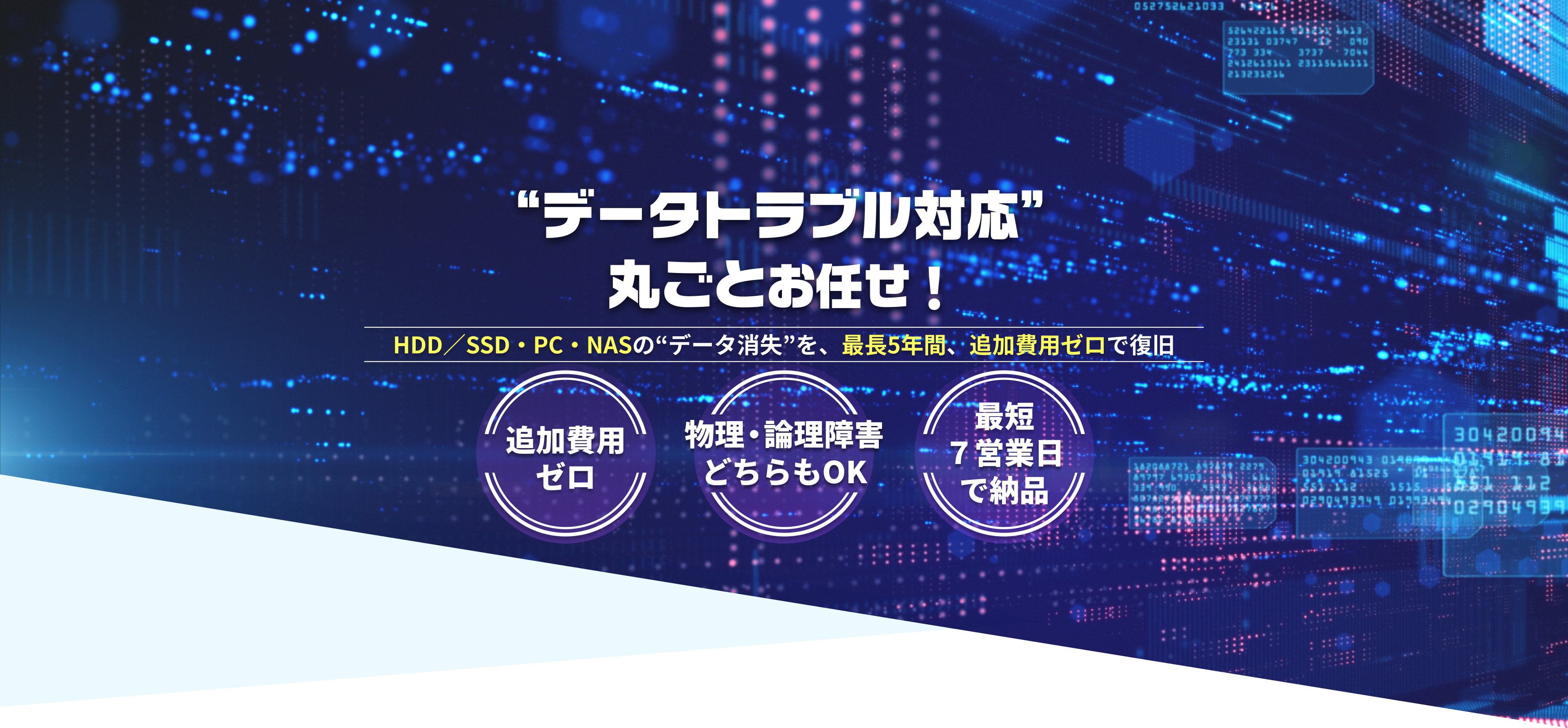 HDD/SSD・PC・NASの“データ消失”を、最長5年間、追加費用ゼロで復旧